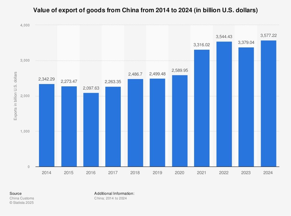 - Pour l’année 2024, selon les données de l’Administration générale des douanes chinoises (GAC), les exportations et importations de marchandises de la Chine ont atteint un total de 43,85 trillions de yuans — soit environ 6,1 trillions de dollars. Cela représente une hausse de 5 % par rapport à 2023. (Gouvernement Chinois)